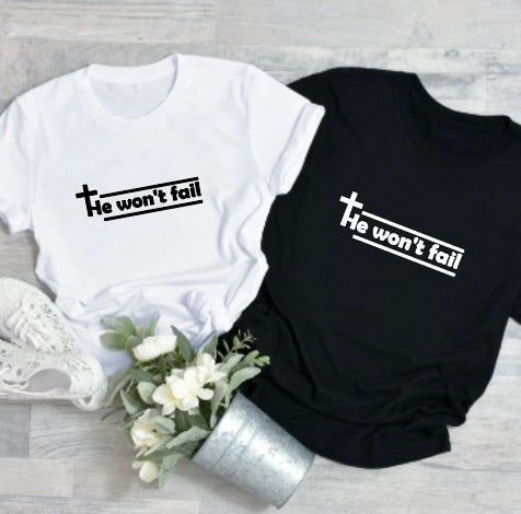 In a world full of uncertainty, one thing remains true: God will never fail. The He Won’t Fail Tee is a powerful reminder that His promises are sure, His love is unwavering, and His faithfulness endures. No matter what you’re facing, you can stand firm knowing that God is always with you. As Isaiah 41:10 reminds us, “So do not fear, for I am with you; do not be dismayed, for I am your God. I will strengthen you and help you; I will uphold you with my righteous right hand.” Wear this tee as a declaration of your unshakable faith, knowing that He will never let you down.