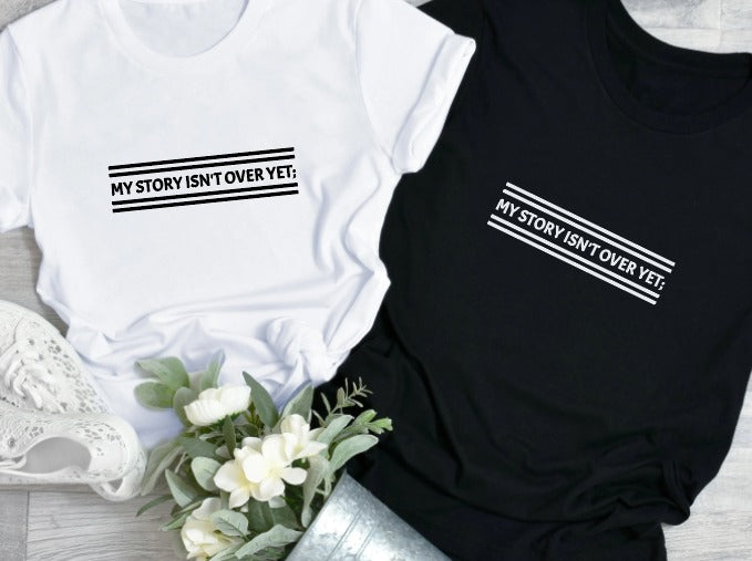This tee is a symbol of strength, hope, and the courage to keep going. Designed for those who know that life isn’t always easy — but that every chapter matters. Soft, comfortable, and meaningful, the My Story Isn't Over Yet Tee is a gentle reminder that your journey isn’t finished. Every time you wear it, you remind yourself (and others) that no matter where you are in life, your story is still being written — and the best chapters may be yet to come.