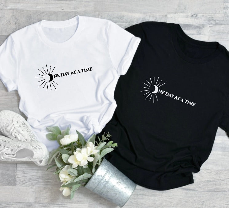 Embrace the journey with our "One Day At A Time" tee — a gentle, spiritual reminder to trust the process and live in the present. Slow down and focus on what truly matters. This shirt combines comfort with a powerful message of resilience, faith, healing, and inner peace. Whether you're on a path of growth, recovery, or simply seeking balance, let this tee be your daily affirmation: breathe deeply, stay grounded, and move forward with grace — one day at a time.